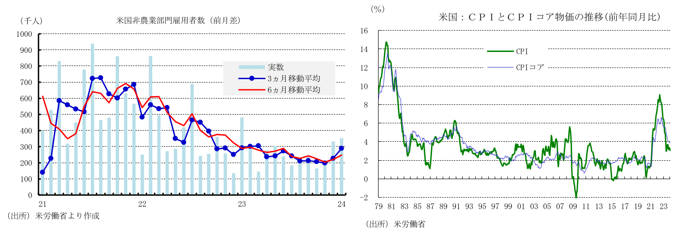 金融環境の引き締まりにもかかわらず、堅調な労働市場を背景に経済が底堅く推移すると見込まれることから、FRBは利下げを急がないと予想される。一方、PCEコアデフレーターは、財価格の下落やサービス価格の緩やかな伸び鈍化により、前年比+2%に向けて緩やかながらも低下を続けるとみられ、実質FF金利の上昇による景気下振れリスクへの警戒感が徐々に高まろう。このような環境のもと、FRBは6月ごろにコアインフレの+2%への低下に対する確信を強めるとみられ、漸進的な金融緩和策を開始すると予想される。
