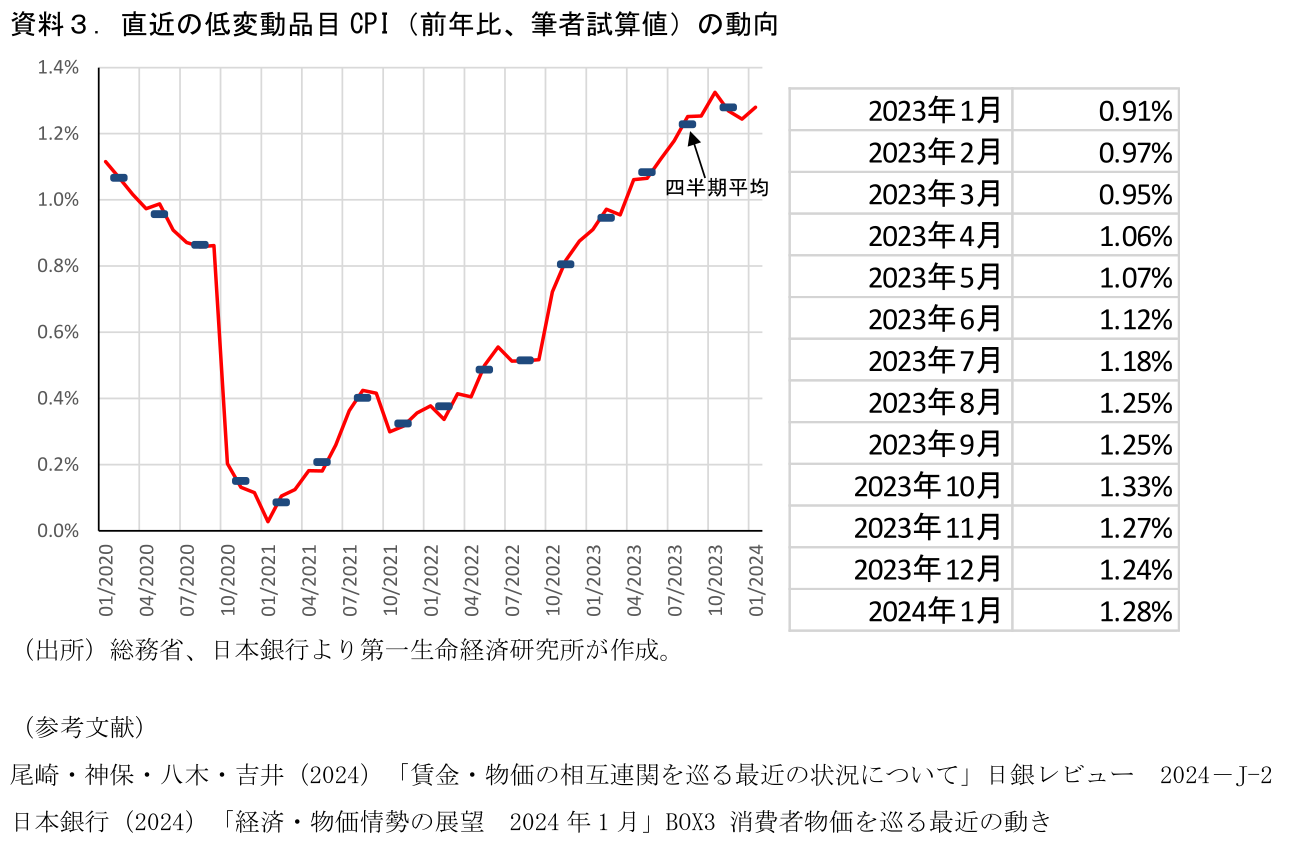 今後も今年の春闘を経て物価上昇の中身がどう変わっていくか、日銀がそれをどう推し量るかを考えるうえで、低変動品目CPIの動きは示唆のあるものとなろう。定期的にフォローしていきたい。