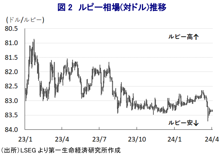 インド中銀、ルピー支援策に舵も、楽観しにくい展開が続く ~対外収支悪化、物価高に加え、中東向け輸出や移民送金減少など悪材料が続く可能性~