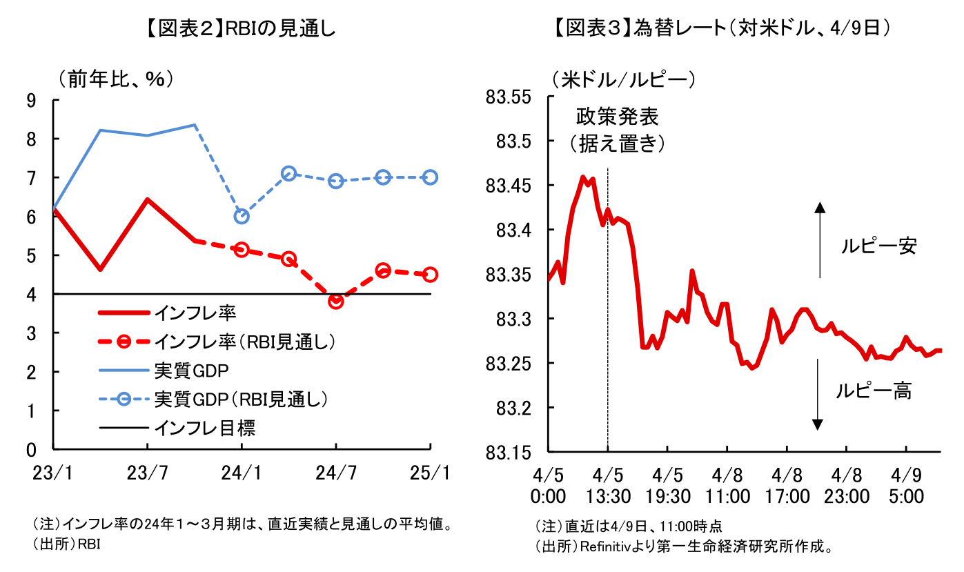 ~市場予想通りの据え置き、インド総選挙前に堅調な経済成長見通しと食料インフレ懸念が共存~