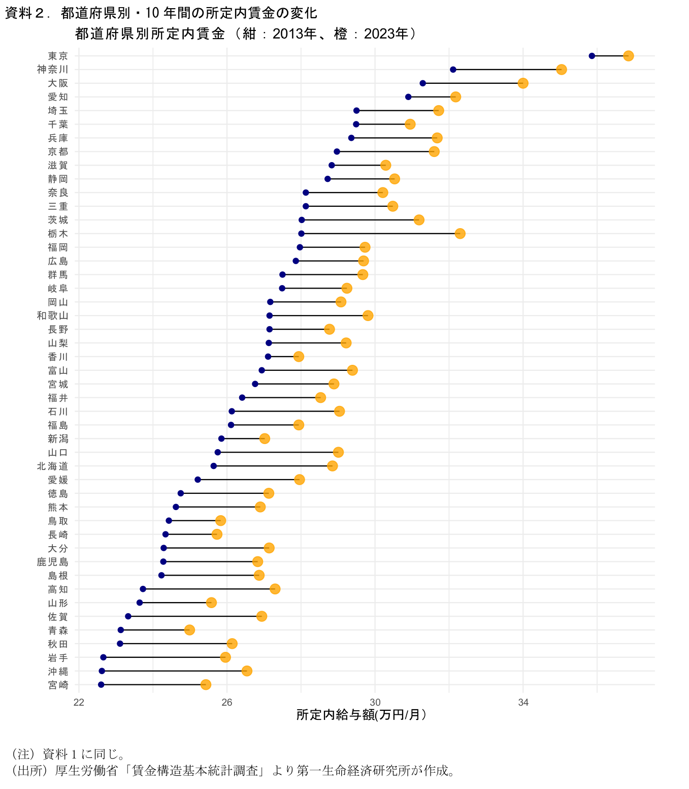 基本的に賃金格差の縮小、賃金カーブのフラット化は日本経済にとってポジティブに捉えてよい事象であろう。地方の賃金が東京にキャッチアップするようであれば、地方で働く魅力は相対的に高まり、東京一極集中の問題を緩和することになりうる。より働く人の多い中小企業の賃金が大企業にキャッチアップしていることは、賃金上昇の裾野の広がりという観点でも重要だ 。低年齢層の賃金上昇によって、年功序列の賃金体系が徐々に是正されていることは、若年層の所得環境改善を通じて結婚や出産の金銭面のハードルを低くすることにもつながるだろう。また、年功序列賃金の是正は同じ企業にとどまり続けることのメリットを低下させ、労働者の転職や労働移動を促す作用をもたらそう。高生産性・高賃金職への労働移動の拡大にもつながる可能性がある。