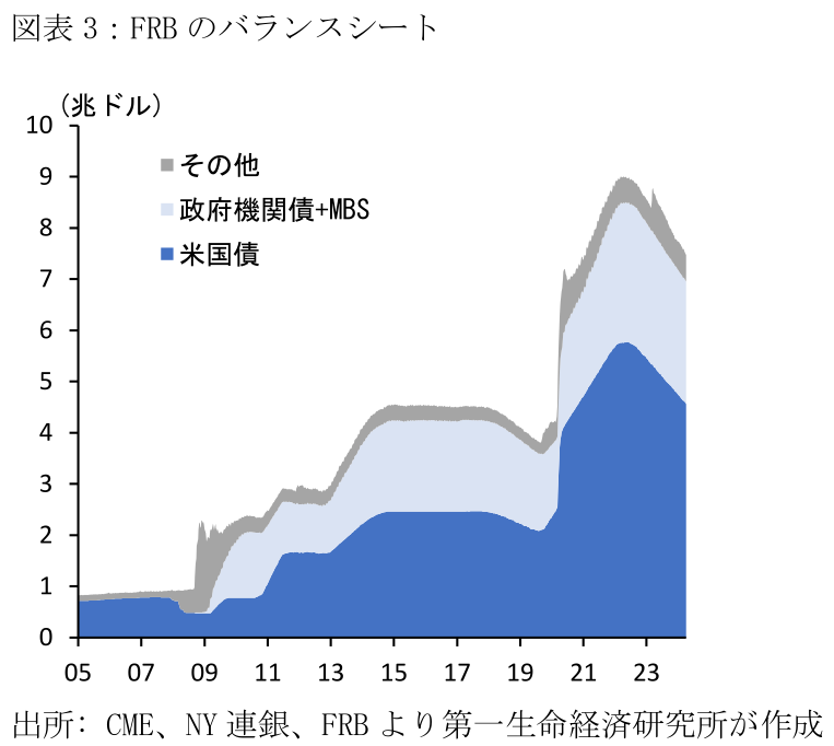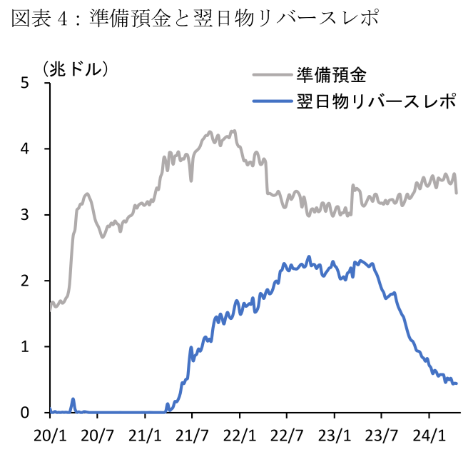 FRBは現行のバランスシート縮小策(QT)の見直しに関する詳細な議論を3月FOMCにて開始した。同FOMCの議事要旨では、大半の参加者が「かなり早く(fairly soon)に縮小ペースの減速を決定することが賢明」と言及されており、FRBは5月FOMCにてこれを正式に決定する可能性が高い。FRBは現行QTの継続が準備預金の急減に繋がる可能性を踏まえて、短期金融市場の不安定化リスクを回避する方針を示すとみられる。