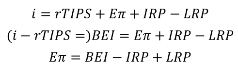 また、物価連動債利回りrTIPSには低流動性(流動性リスクプレミアムLRP)が含まれる。