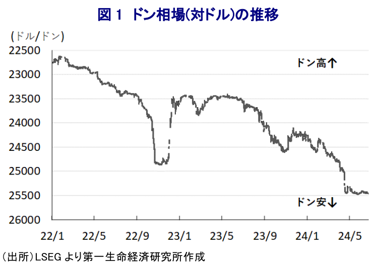 - ベトナム共産党は21日に開催した中央委員会総会で党政治局員のズン氏の辞任を明らかにした。ここ数年の同党内ではチョン指導部による「反腐敗・反汚職」を名目にした派閥争いが激化している。2021年のチョン体制3期目入りを経て落ち着きを取り戻すとみられたが、昨年以降も国家主席や国会議長が相次いで解任、引責辞任に追い込まれている。結果、この1年半で党政治局員の辞任が7人目となる異例の事態となっている。先月始まった国会では国家主席と国会議長の人事を決定して政治不安の払しょくに動いたが、あらためて政治不安が意識されるなかで通貨ドン安圧力が強まることが懸念される。政治を巡る問題が経済の足を引っ張る可能性にこれまで以上に注意を払う必要性が高まっている。