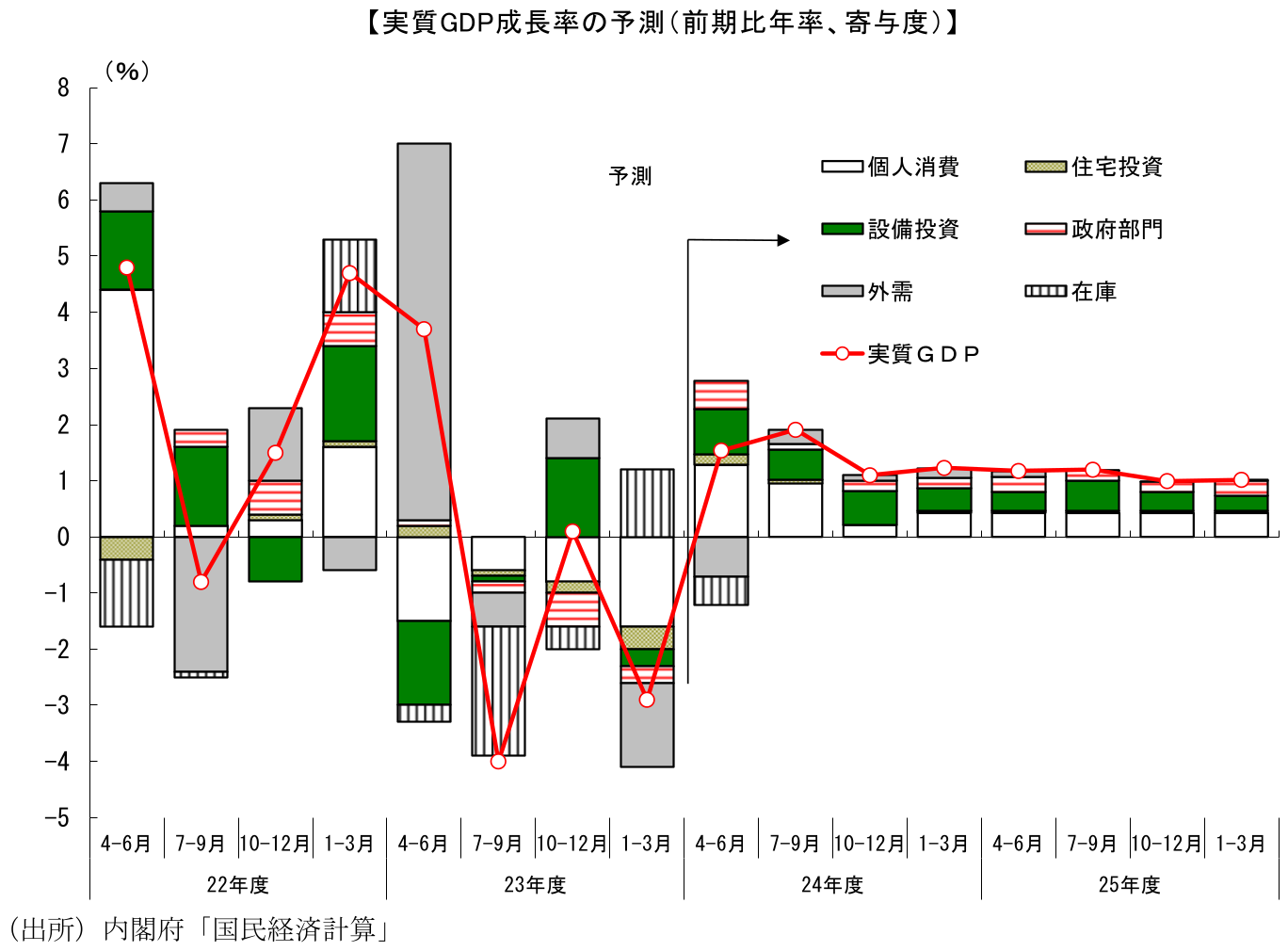 最新の見通しは、2024~2025年度日本経済見通し(2024年9月)(2024年4-6月期GDP2次速報後改定)をご覧下さい。
