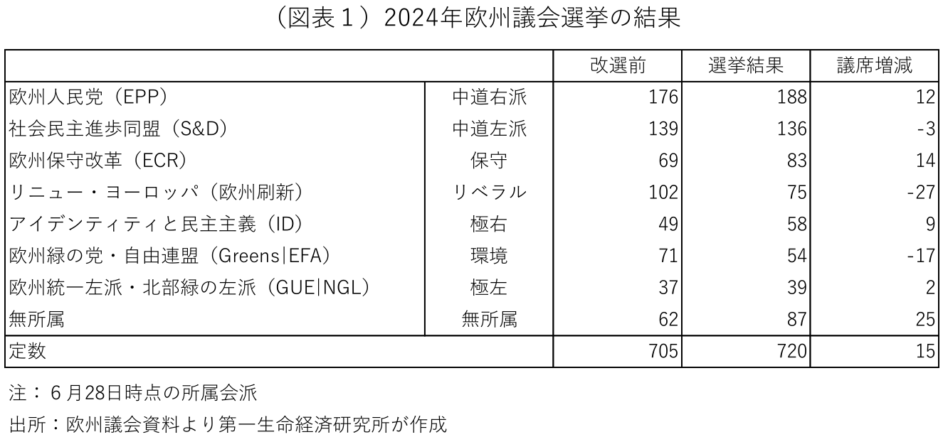 同会派には、欧州議会選挙で会派に所属していなかった中東欧の新興右派政党や、イタリアで連立政権に加わる極右政党「同盟(Lega)」などが合流する可能性が高い。また、フランスで7日の下院・決選投票で政権奪取の機会を窺う極右政党「国民連合(RN)」も、選挙後に現在所属する極右会派「アイデンティティと民主主義(ID)」を解体し、新たな右派会派に合流する可能性が取り沙汰されている。その場合、統一右派内の主導権争いをオルバン氏に譲ることにつながるが、支持基盤の更なる拡大に向けて極右のイメージを和らげる狙いもある。