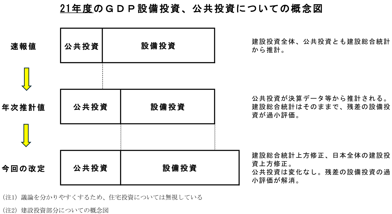 GDPの建設投資が上方修正され、設備投資の歪みが解消された。結果として、過小評価されていた設備投資が真の値に近づいた。