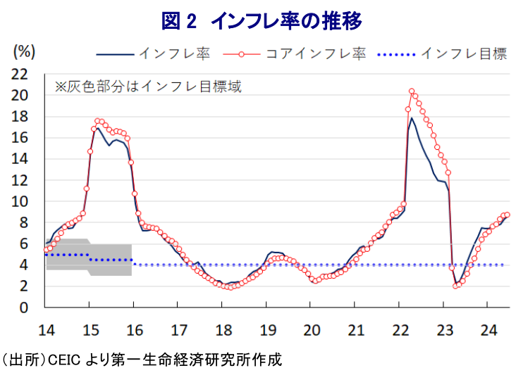 メキシコ中銀は13会合ぶりの利下げ局面休止、一進一退が続くか ~インフレの目標回帰時期は2027年半ばに後ズレ、ペソ相場は外部環境に左右される展開が続く~