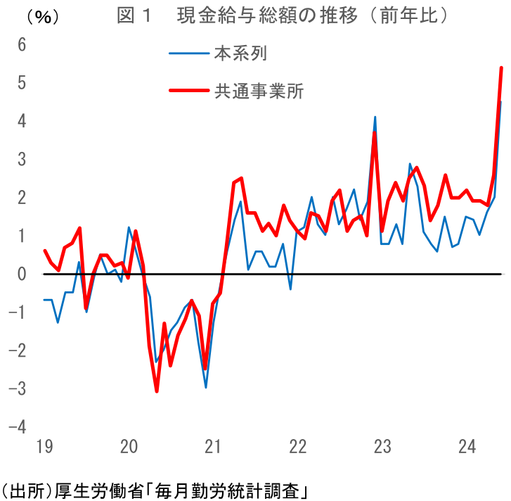 一つ注意したいのは、特別給与は振れやすい点だ。夏のボーナスは6、7月に支給されることがほとんどだが、前年との支給タイミングのズレ等で6、7月の結果は大きく振れることがある。また、本日公表されたのは6月速報であるため、ボーナスを大きく増額した事業所や、逆に支給が控えめだった事業所の調査票提出のタイミングによって数値がブレることもある。こうしたことから、8月23日公表の確報の結果や、9月5日に公表される7月分(速報)の結果も確認したいところだ。6月はさすがに出来過ぎの感があり、6、7月の結果は均してみた方が良いだろう。