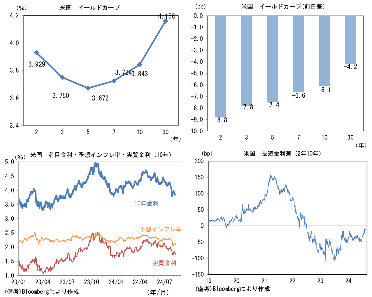 実質金利は1.749%(▲3.6bp)へと低下。長短金利差(2年10年)は▲9.1bpへとマイナス幅縮小。 -