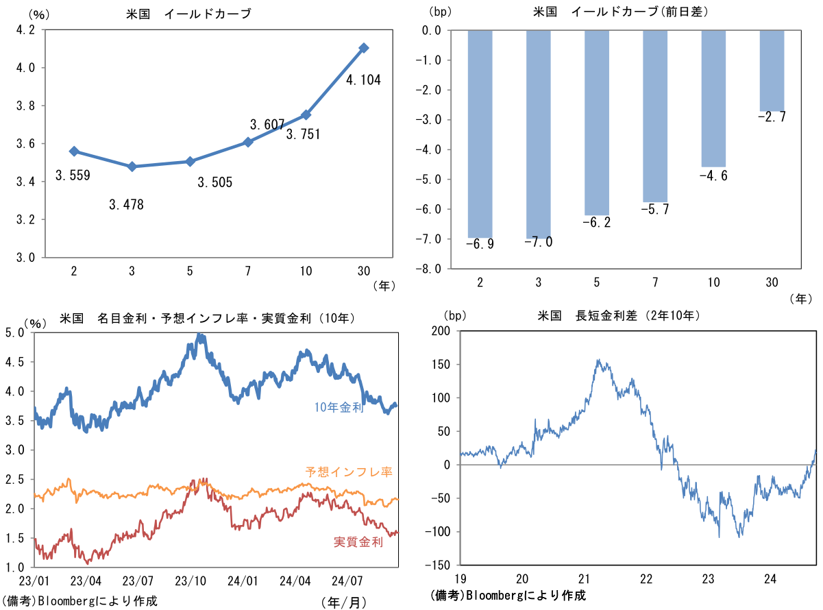 実質金利は1.592%(▲3.3bp)へと低下。長短金利差(2年10年)は+18.9bpへとプラス幅拡大。