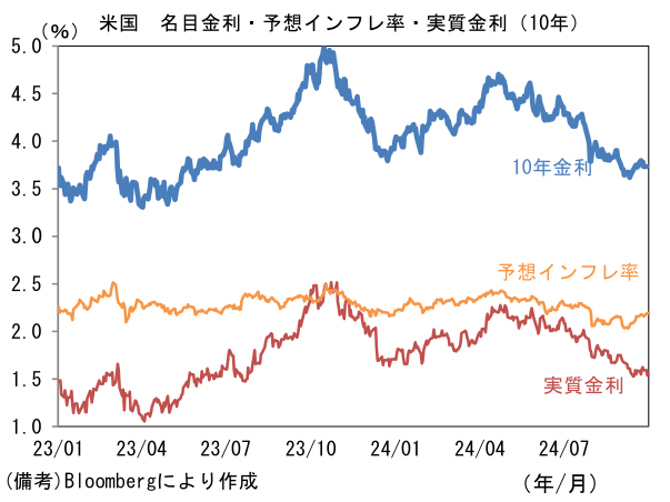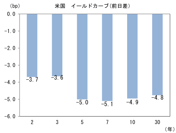 米金利はカーブ全般で金利低下。予想インフレ率(10年BEI)は2.193%(+0.6bp)へと上昇。