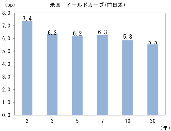 実質金利は1.751%(+1.8bp)へと上昇。長短金利差(2年10年)は+2.8bpへとプラス幅縮小。