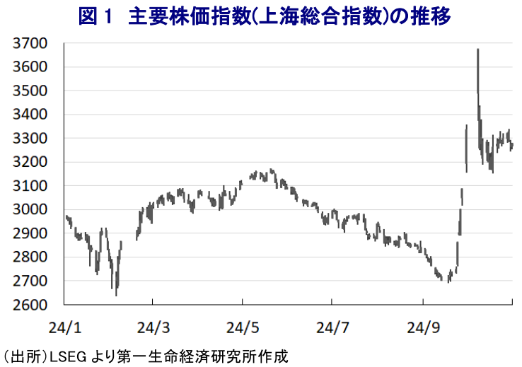 このところの中国経済を巡っては、不動産不況をきっかけにした景気減速の動きが一段と深刻化しているほか、共産党や政府が掲げる今年の経済成長率目標(5%前後)の実現のハードルが高まる事態に直面している(注1)。こうしたなか、当局は不動産不況の元凶となっている不動産在庫の解消を目的に、地方政府が『妥当な価格』で未完成の住宅を買い上げた上で低所得者層向けの安価な保障性住宅に転用するほか、地方政府が売却した土地の買い戻しを認めることにより、過剰供給問題に対応する方針を明らかにした。また、人民銀行(中銀)も需要喚起を目的とする住宅ローン金利や頭金規制の引き下げに加え、最大で1兆元規模の貸付制度を創設し、うち5000億元を大手21銀行に対する3000億元の再融資プログラムを含めた保障性住宅向け貸付に、残りの5000億元を担保補完貸付制度に振り向ける方針を明らかにした。他方、事態の深刻さに対して公表された対策の『本気度』の小ささを見透かすように、金融市場は一時的に盛り上がりをみせるもすぐに勢いを失うとともに、実体経済も一段の下振れを余儀なくされる事態に見舞われた(注2)。その後も中銀は政策金利の引き下げなど全面的な金融緩和に動く一方で利下げ幅は小幅に留めるなど小出しの対応を続けるとともに、国際金融市場における米ドル高が人民元安を招くことを警戒してイールドカーブのスティープ化を図るなど、金融緩和の効果を相殺するというちぐはぐな対応を続けた。しかし、米FRB(連邦準備制度理事会)の利下げ観測の高まりを機に国際金融市場を取り巻く環境が大きく変化したこともあり、中銀と国家金融監督管理局、証券監督管理委員会が合同で記者会見を行い、一段の利下げと預金準備率の引き下げのほか、既存の住宅ローン金利の引き下げ、住宅ローンの頭金規制の統一、借り換えに伴う資金支援比率の引き上げなど住宅需要喚起策を公表した。さらに、不動産市況の下支えを目的とする特別目的債券発行による遊休地購入のほか、信用力の高い企業を対象に不動産開発業者からの土地取得を目的とする融資を可能とする方針を示した。また、PKO(株価維持政策)として金融機関による株式保有拡大を目的とするスワッププログラム(5000億元)、企業の自社株買い促進に向けた低利融資(最大3000億元)を公表した。その後に開催された共産党中央政治局会議では金融緩和と財政出動により成長率目標の実現を後押しする方針を示したほか、財政部も特別国債の『大幅な発行増』を通じた低所得者層への補助金給付や不動産市場支援、国有銀行の資本拡充に動く方針を示した。そして、住宅都市農村建設部も地方政府が優良な住宅開発案件を選定して商業銀行に融資を促す制度(ホワイトリスト)を大幅に拡充する(2.3兆元→4兆元)ほか、都市部の老朽化住宅の再開発促進を図る方針を明らかにしている。このように、当局が五月雨式に対応を公表していることを受けて、金融市場では「政策に売りなし」という『逸話』に沿う形で株価は大きく底入れする動きが確認された。しかし、一連の対応を巡っては財政出動に言及するも、その『規模感』が示されないなど内容に不透明感がくすぶるなか、株式相場は上値の重い展開をみせるなど早くも『次』を催促している様子がうかがえる。現状においては五月雨式に対応を公表することで金融市場の期待を繋いでいるとみられるものの、具体性を欠く対応が続けば足下を見透かされる可能性に留意する必要がある。