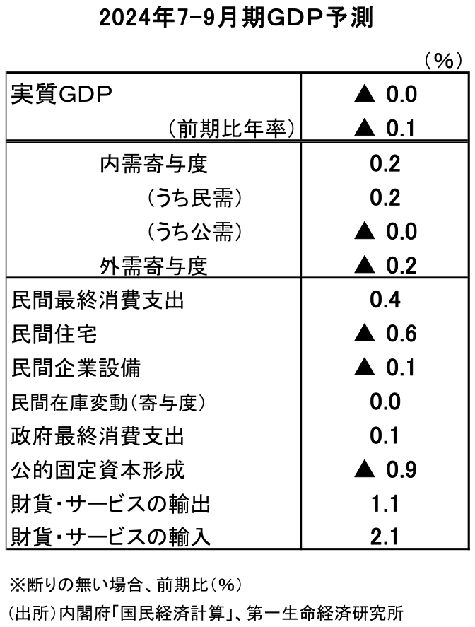 7-9月期GDPはマイナス成長の可能性も(2024年7-9月期GDP予測・最終版)