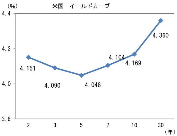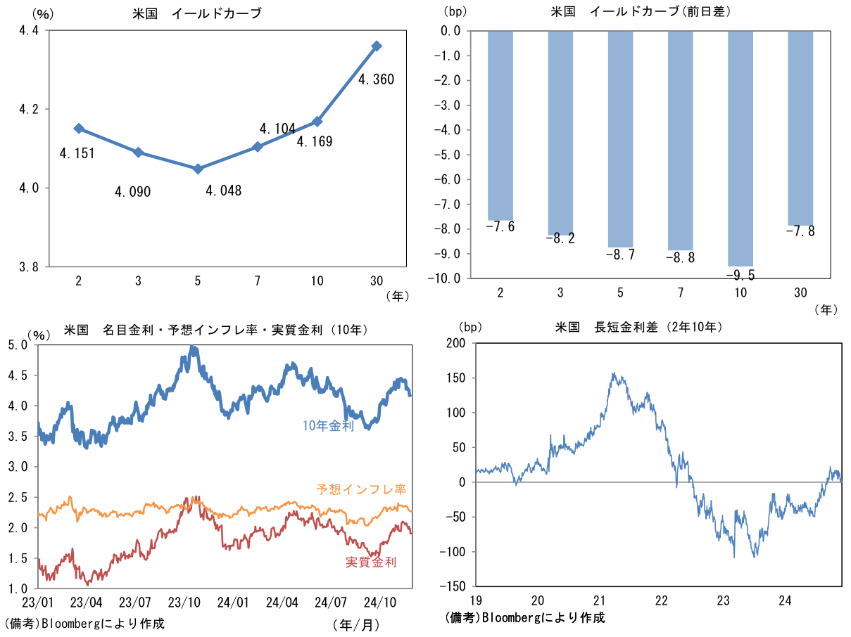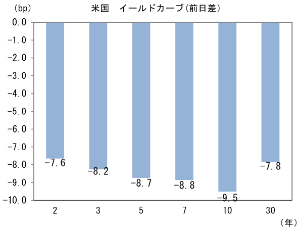 米金利はカーブ全般で金利低下。予想インフレ率(10年BEI)は2.268%(▲1.0bp)へと低下。