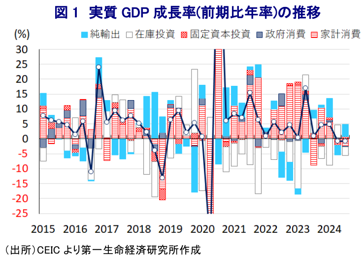 ~2四半期連続のマイナス成長で当局の思惑に沿った動きも、政策の手足が縛られる展開が続く懸念も~