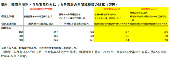 筆者は11月5日付のレポート「基礎控除引き上げの論点整理」において、今回の控除引き上げが大きく①家計向け恒久減税、②制度のインフレ調整、③年収の壁対策の3つの性格を併せ持つものだと指摘した。3党協議でも同様の観点でいずれの政策目的を重視するのか?といった議論が展開されたようだ(例えば、NHK「年収103万円の壁」引き上げの目的は?財源確保策は?」)。ただ、現時点で筆者は、与党案がいずれの観点でも中途半端なものになったという印象を持っている。