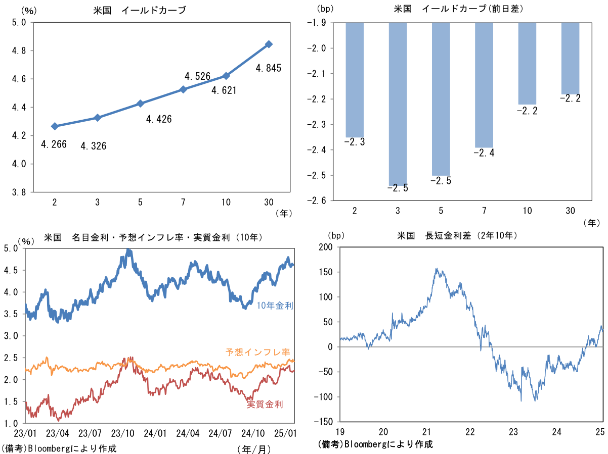 実質金利は2.201%(+2.2bp)へと上昇。長短金利差(2年10年)は+35.0bpへとプラス幅縮小。