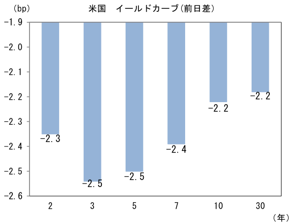 米金利はカーブ全般で金利低下。予想インフレ率(10年BEI)は2.418%(▲4.3bp)へと低下。