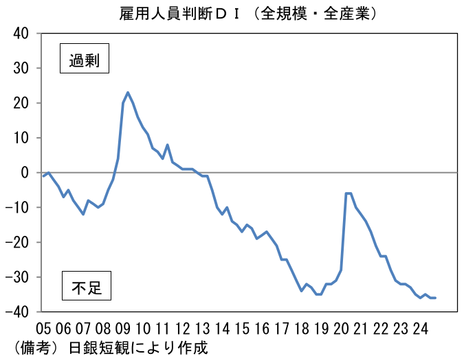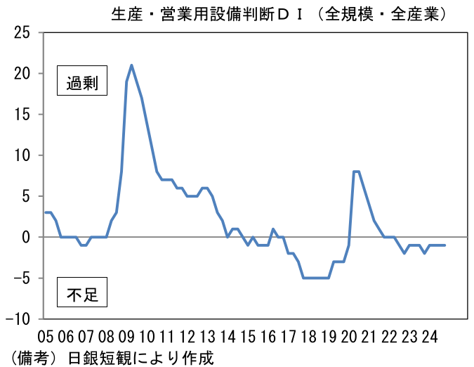 日銀は、基調的な物価上昇率は需給ギャップと予想インフレ率で決まると説明している。この説明に日銀自身が忠実なら、今回のように需給ギャップがマイナスの状態における利上げはやや矛盾を内包する。それにもかわらず利上げを実施したということは「予想インフレ率が更に高まる・高止まりする」と日銀が踏んでいるからではないか。また、ある種の統計の技術的要因として、建設業などで実際に起きている、人手不足による受注の見送りなどを(経済指標としての)需給ギャップが捕捉できていないことを考慮したのかもしれない。人手不足に陥り、案件が着工に至らければ、労働者や設備の稼働率は低下し、統計上、需要は認識されないので、需給ギャップの改善は遅々としてしまう。こうした事象は宿泊・飲食などでも発生しているとみられ、実際、日銀短観では極度の人手不足が示されているのをよそに、資本(設備)の不足感は認められていない。こうした事情を踏まえると、(今回の利上げもそうであったように)需給ギャップのプラス転化は利上げの必要条件ではなさそうだ。「日銀の予想する予想インフレ率が上向く」ことで利上げが続くのではないか。