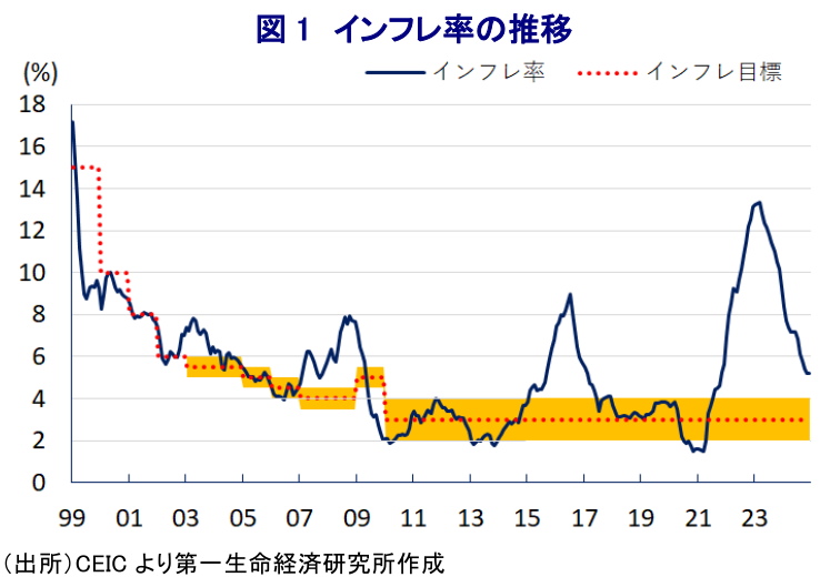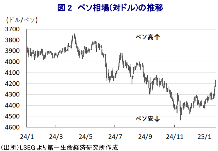 メキシコ中銀は13会合ぶりの利下げ局面休止、一進一退が続くか ~インフレの目標回帰時期は2027年半ばに後ズレ、ペソ相場は外部環境に左右される展開が続く~