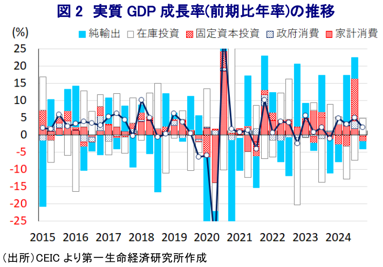 - タイ・24年成長率は+2.5%、25年も同程度を予想も懸念要因は山積