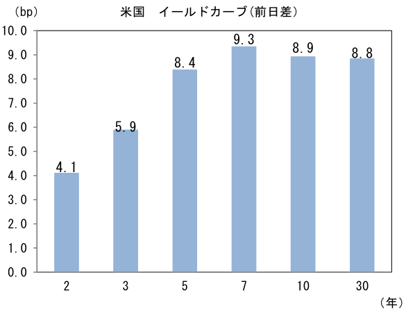 実質金利は1.887%(+9.7bp)へと上昇。長短金利差(2年10年)は+25.0bpへとプラス幅拡大。 -