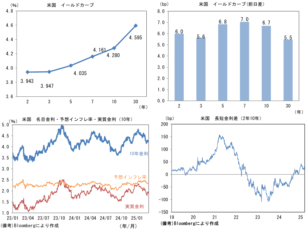 実質金利は1.961%(+6.1bp)へと上昇。長短金利差(2年10年)は+33.3bpへとプラス幅拡大。