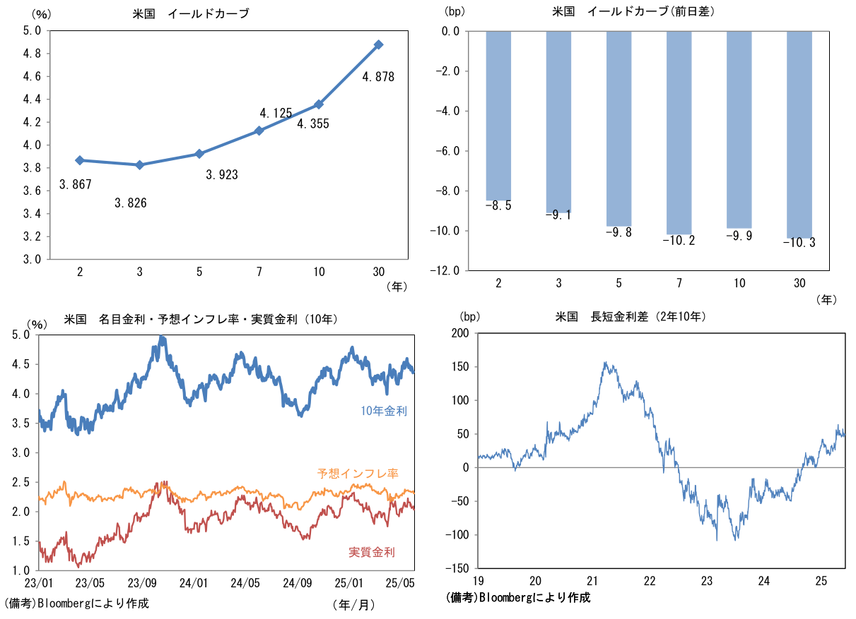 実質金利は2.033%(▲6.0bp)へと低下。長短金利差(2年10年)は+48.7bpへとプラス幅縮小。 -