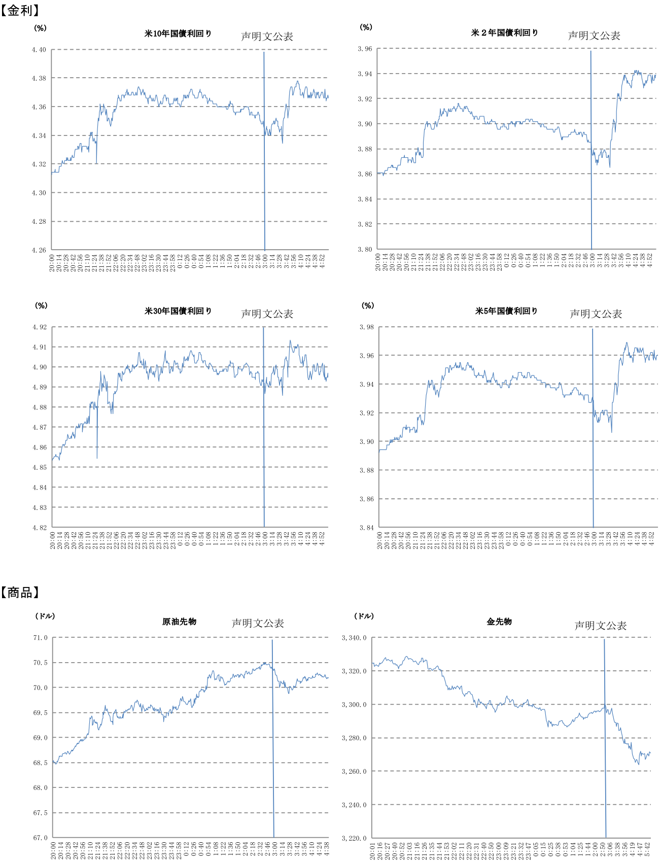政策金利の据え置きに関して、ウォラーFRB理事とボウマンFRB副議長の2人が25bpの利下げが適切とし、反対票を投じた。1993年12月以来、約32年ぶりに、複数のFRB理事が決定に反対した。