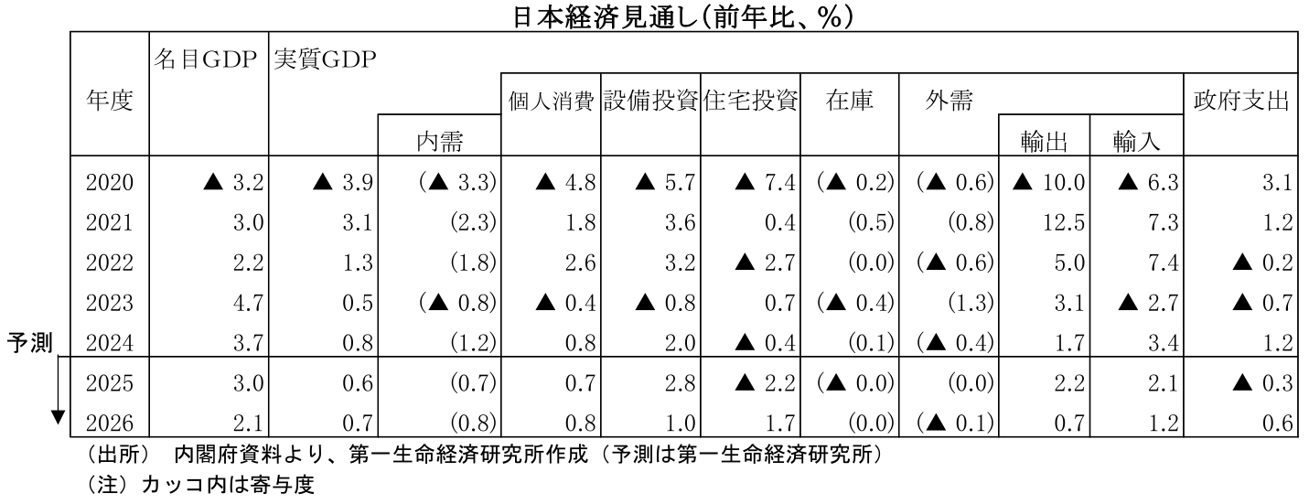 本資料は情報提供を目的として作成されたものであり、投資勧誘等を目的としたものではありません。作成時点で、第一生命経済研究所が信ずるに足ると判断した情報に基づき作成していますが、その正確性、完全性に対する責任は負いません。見通しは予告なく変更されることがあります。また、記載された内容は、第一生命保険ないしはその関連会社の投資方針等と常に整合的であるとは限りません。