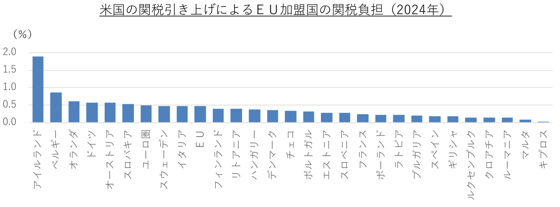 1~3月期のユーロ圏経済は、米国の関税引き上げ前の駆け込み輸出と、多国籍企業の経済活動が大幅な押し上げ要因となったアイルランドの高成長で上振れした。4~6月期は反動で減速したものの、辛うじてプラス成長を維持している。これまで関税協議を巡る不透明感が経済活動の足枷となってきたが、米国と欧州連合(EU)は7月末に関税率などの大枠で合意した。米国は主力の自動車や医薬品を含むEUからの輸入品に一律15%の関税を課すとともに、航空機や一部の医薬品などについては、米EUが相互に関税を0%にする。EUはまた、米国産のエネルギーや軍装備品の輸入拡大や米国への投資拡大を約束した。懲罰的な高関税や報復の応酬といった事態は回避されたが、欧州の輸出企業への打撃は避けられない。