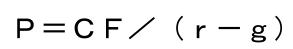 続いては、割引キャッシュフローモデルを元に、過去20年間の関係から株価関数の推計を実施する。具体的には、株価をP、直近キャッシュフローをCF、今後のCF成長率をg、割引率をrとしたとき、以下の計算式で株価を計算するモデルである。