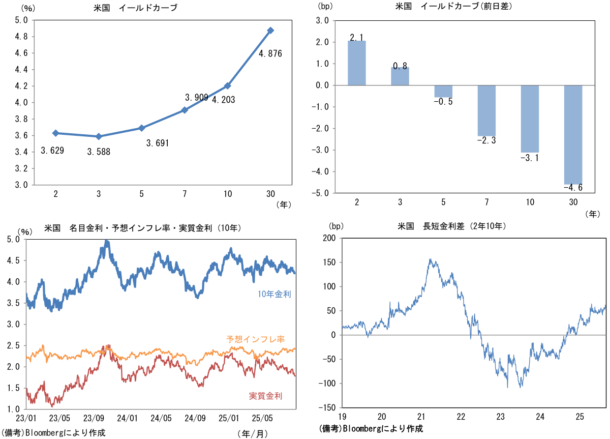 実質金利は1.786%(▲0.8bp)へと低下。長短金利差(2年10年)は+57.0bpへとプラス幅縮小。 -