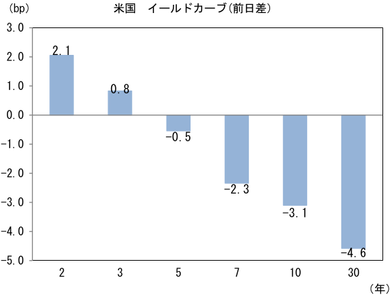 米金利はツイスト・フラット化。予想インフレ率(10年BEI)は2.416%(▲2.3bp)へと低下。