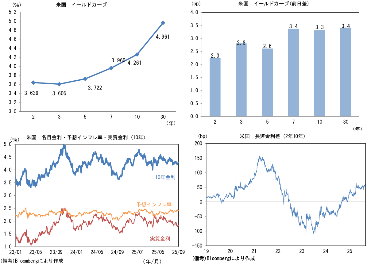実質金利は1.842%(+2.8bp)へと上昇。長短金利差(2年10年)は+62.0bpへとプラス幅拡大。 -