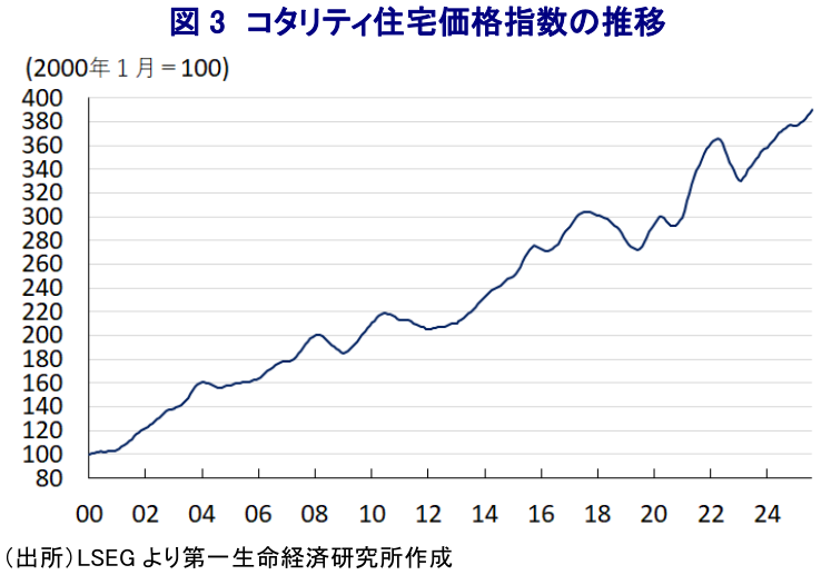 - しかし、利下げの副作用として不動産市況は再び上昇しているほか、インフレ再燃の懸念も高まっている。RBAは追加利下げに慎重になる可能性もあり、当面の豪ドル相場は底堅い推移が続くと見込まれる。