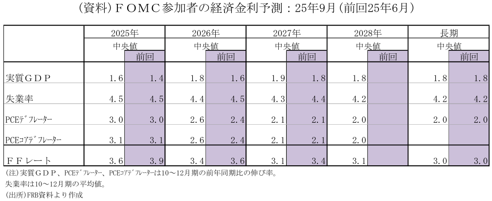 FRBは労働市場の軟化等を受け6会合ぶりの利下げ (25年9月16、17日FOMC)