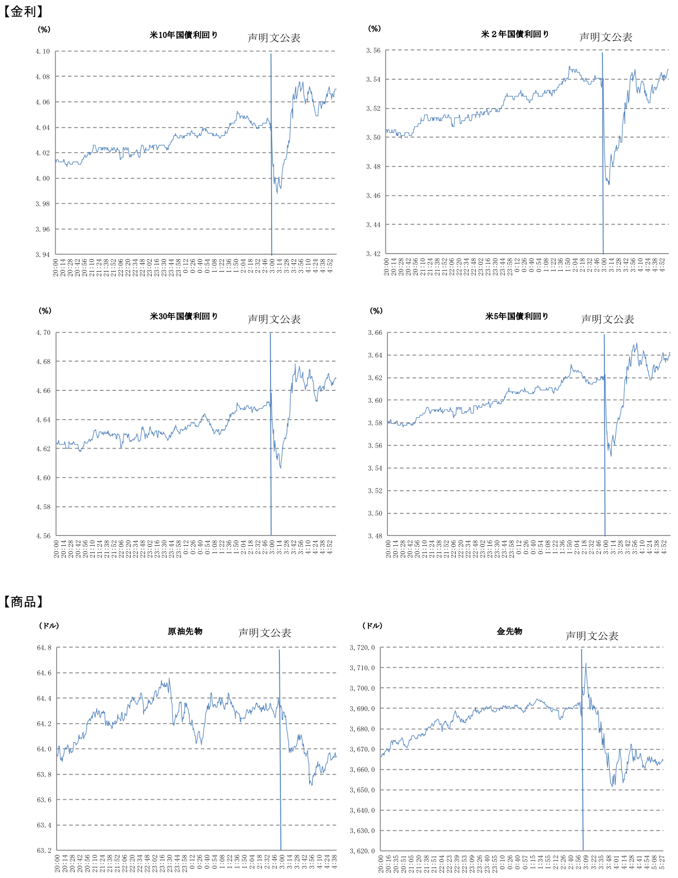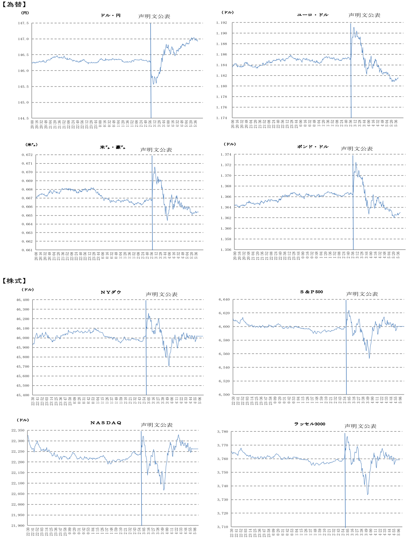 FRBの金融政策スタンスを示すFOMC声明文は、今回「FF金利の目標レンジの追加調整を検討する際、委員会は今後のデータ、今後の見通し、リスクのバランスを慎重に評価する」と、前回「FF金利の目標レンジの追加調整の幅とタイミングを検討する際、委員会は今後のデータ、今後の見通し、リスクのバランスを慎重に評価する」と、追加利下げの判断を慎重に行う姿勢を示していた「幅とタイミング」との文言を削除し、利下げに前向きな姿勢への転換を示した。