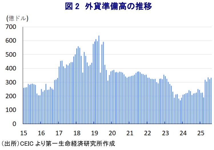 アルゼンチン金融市場では、ブエノスアイレス州議会選での与党惨敗を受けて混乱が続いた。これにより、中間選挙で与党が苦戦し、ミレイ政権の改革路線に黄信号が灯るとの懸念から、通貨ペソ安や株価下落が進むなど資金流出が進行した。中銀は為替介入を強いられ、外貨準備高が減少する事態に直面した。