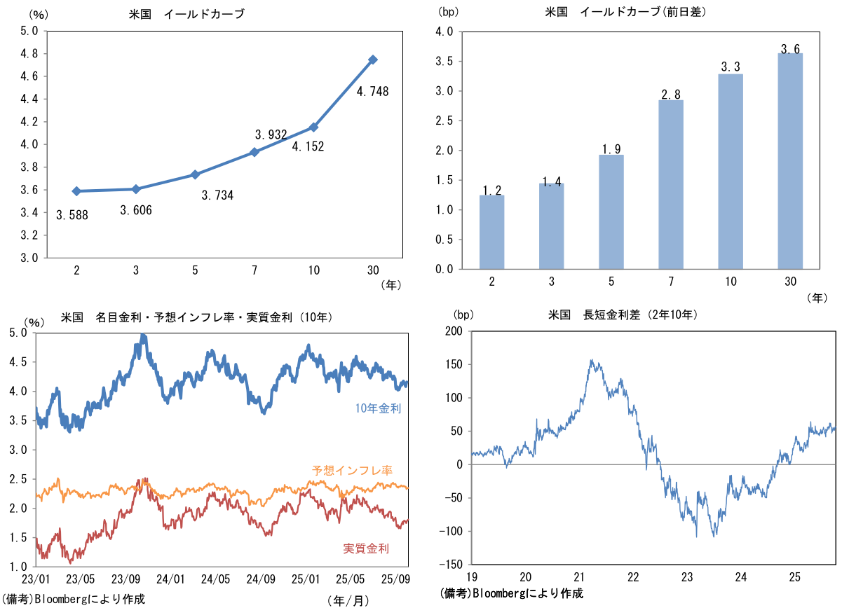 実質金利は1.805%(+2.7bp)へと上昇。長短金利差(2年10年)は+56.4bpへとプラス幅拡大。