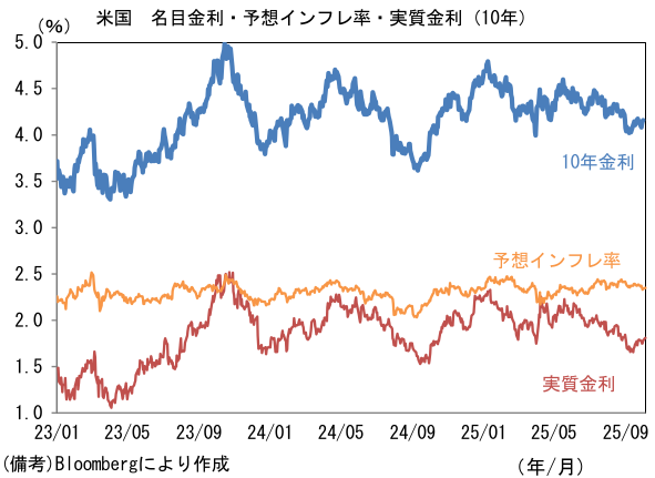 ただし、現時点で筆者は10月に利上げを再開するとの予想を維持する。まず、USD/JPYが150円を超えて円安が進むなど輸入物価の上昇を加速させ得る動きがあることが大きい。利上げに否定的な見解を(少なくとも昨年までは露骨に)示してきた高市総裁といえども、物価高が与党に不利に働くことは過去数年の傾向からみて明らかであり、支持率低下を招き得る円安加速を歓迎しないだろう。この点については、上述の本田氏も「円安が150円を超えたら、やや行き過ぎだろう」と発言している。既にUSD/JPYが150円を超えている現状、日銀の利上げ観測後退に伴って一段と円安が進行するようであれば、日銀に「任せる」姿勢を明確にするのではないか。また、日銀内部では、先の金融政策決定会合で反対票を投じた高田委員と田村委員が反対票(利上げ支持票)を取り下げるとは考えにくく、意見集約の難しさも残存する。日経平均株価が5万円に迫る勢いで上昇していることもあり、日銀が10月に動く可能性は否定できない。