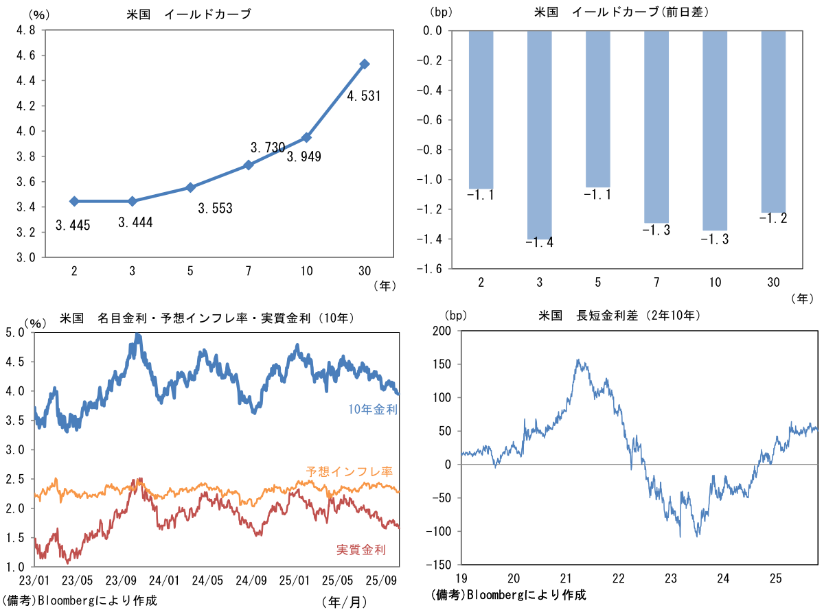 実質金利は1.658%(▲2.8bp)へと低下。長短金利差(2年10年)は+50.3bpへとプラス幅縮小。