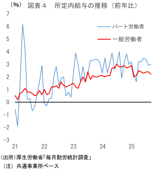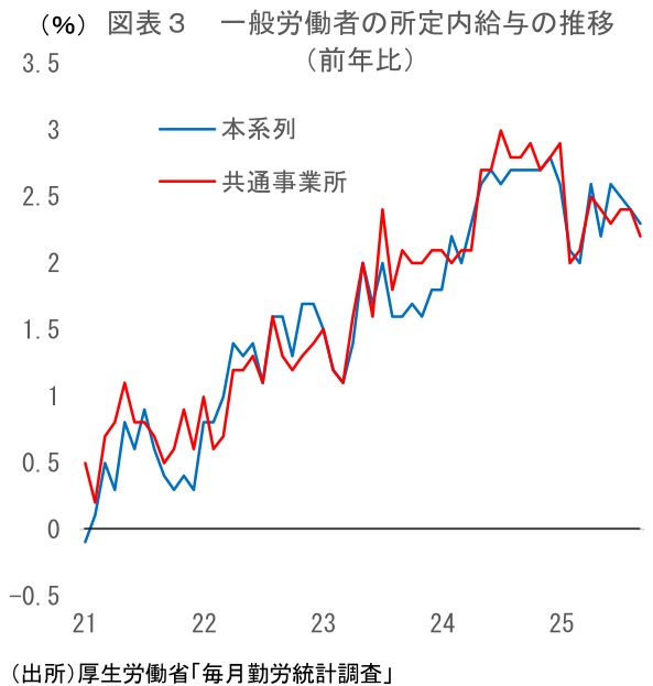 所定内給与はこの先前年比+2%台前半~半ばでの推移か