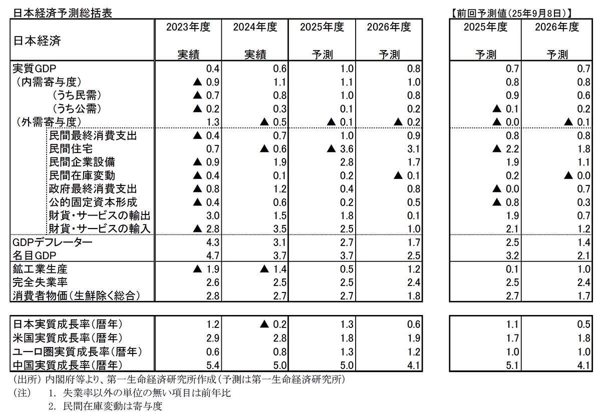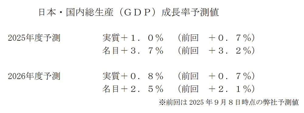 2025~2026年度日本経済見通し(2025年11月)(2025年7-9月期GDP1次速報後改定)
