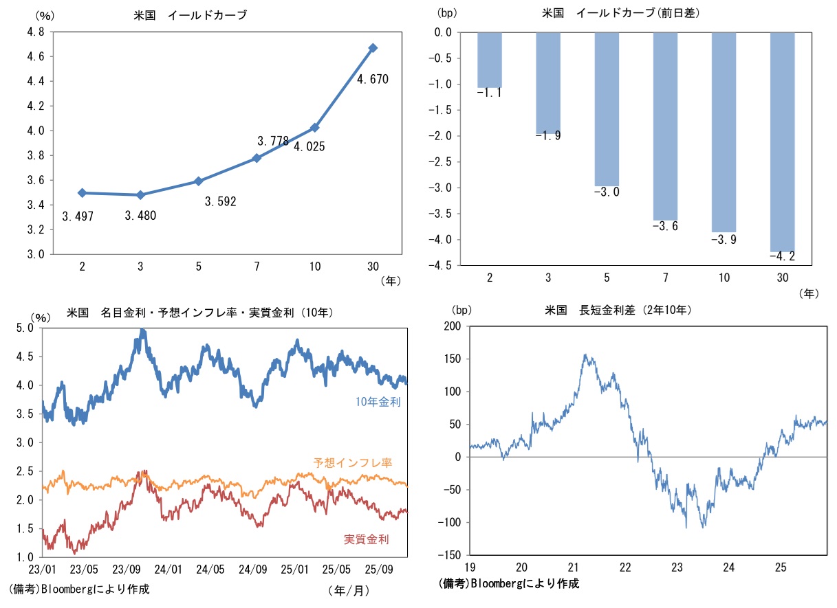 実質金利は1.780%(▲1.4bp)へと低下。長短金利差(2年10年)は+52.4bpへとプラス幅縮小。 -