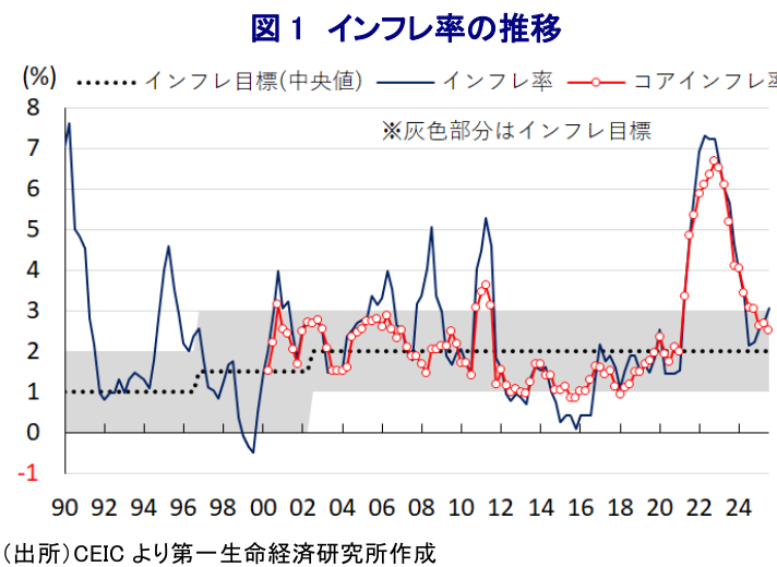 本資料は情報提供を目的として作成されたものであり、投資勧誘を目的としたものではありません。作成時点で、第一生命経済研究所が信ずるに足ると判断した情報に基づき作成していますが、その正確性、完全性に対する責任は負いません。見通しは予告なく変更されることがあります。また、記載された内容は、第一生命保険ないしはその関連会社の投資方針と常に整合的であるとは限りません。
