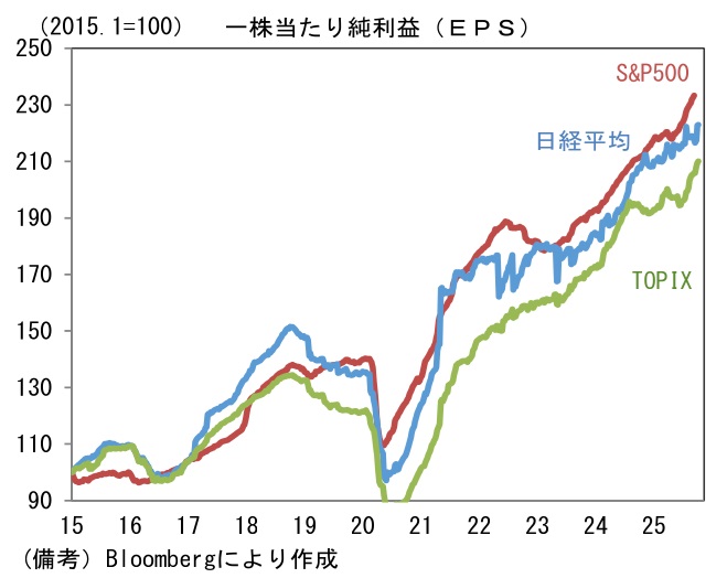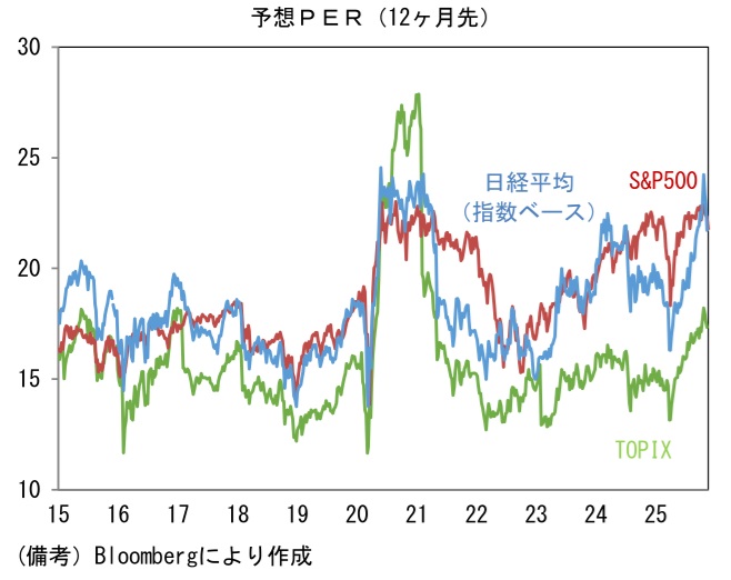 リスクは現在、株式市場で歓迎されている高市政権の基盤が弱体化することであろう。円安・株高が進む一方、外貨建て資産や株式を保有しない層にはインフレが直撃しており、株高不況の様相を呈している。こうした構図が深化すれば、賃上げの恩恵が及ばない高齢者世帯を中心に経済政策に対する不満が蓄積し、支持率低下に繋がる恐れがある。それは株式市場にとって厄介な問題となろう。