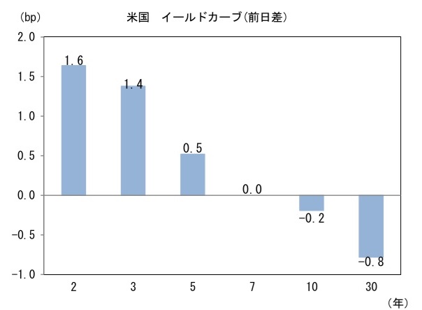 米金利は小動き。予想インフレ率(10年BEI)は2.240%(+0.6bp)へと上昇。実質金利は1.733%(▲1.2bp)へと低下。長短金利差(2年10年)は+51.7bpへとプラス幅縮小。